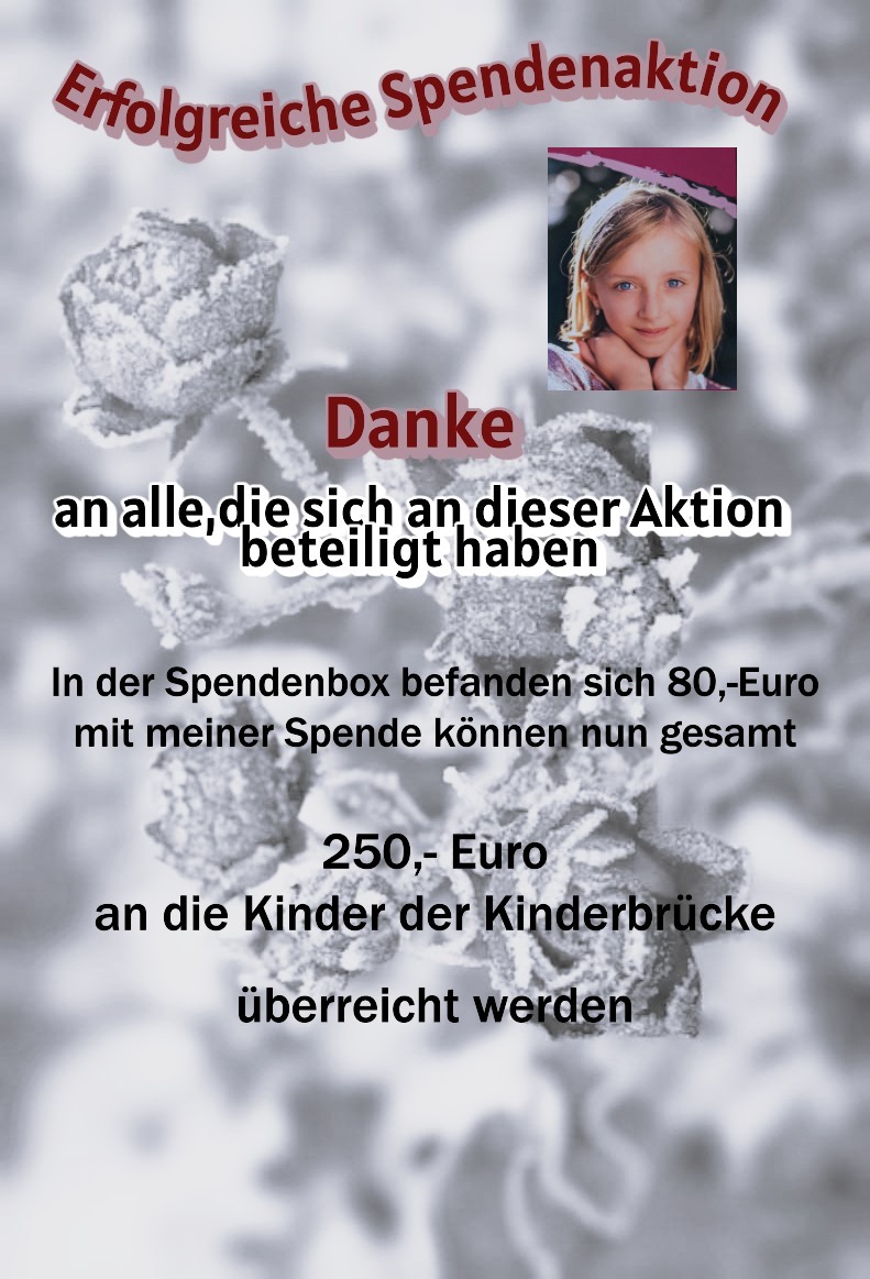 Wir sagen vielen Dank an alle, die sich an unserer Spendenaktion vom 13.05.24 – 17.05.24 beteiligt haben. Es war eine erfolgreiche und für uns alle eine erlebnisreiche Woche. Ein besonderer Dank gilt Monika Siegl (Heilpraktikerin) und Susanne Schwarz (Yogatrainerin), die mich mit Ihrem Beitrag sehr unterstützt haben. Gesamt konnten wir am 04.06.24 der Vorsitzenden, Frau Burk-Seitz stolze 500,-Euro für die Kinderbrücke übergeben. Wir freuen uns, dass wir damit einige Kinder oder eine Familie aus dem Allgäu unterstützen können und das wird nicht das letzte Mal sein – denn wir haben vor, dies im Nächsten Jahr zu wiederholen.